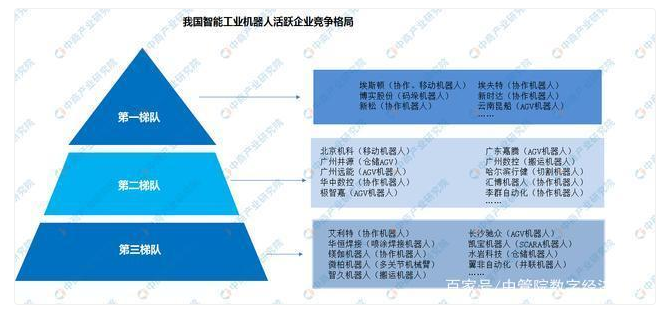 我国智能工业机器人活跃企业市场格局主要分为三个梯队,